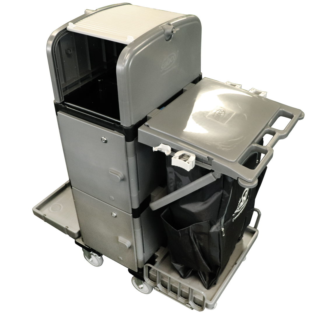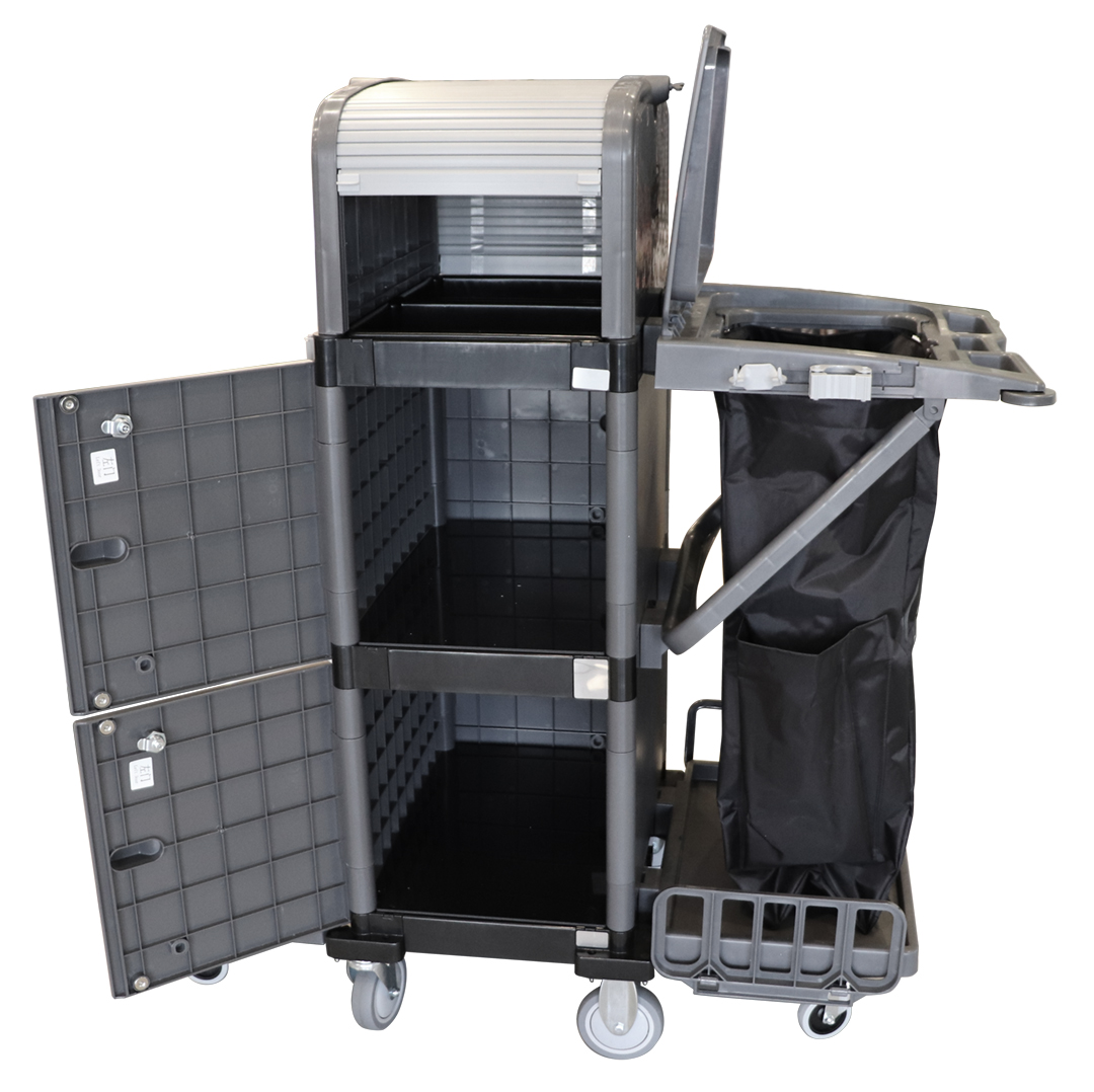 Ultimate ProCart Janitor Trolley, featuring lockable doors and hood on both sides, provides all the essentials on a cart.